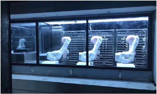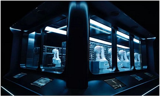 智能菜品仓库:把食材加工统一前置到中央厨房集中加工配送。所有菜品都是从自动控温30万级超洁净智能菜品仓库中,经过全程0~4℃冷链保鲜物流直达门店,进入自动出菜机。